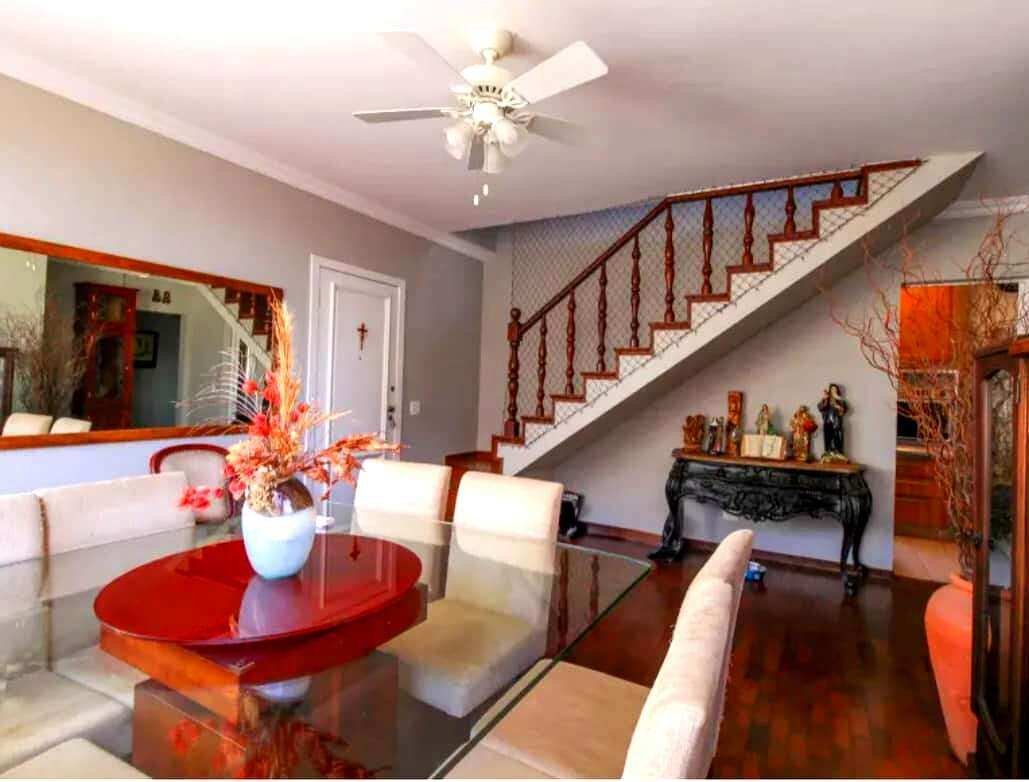Sala para dois ambientes: Ampla, com piso em taco, teto com acabamento em gesso e projeto luminotécnico, criando um ambiente sofisticado e acolhedor.